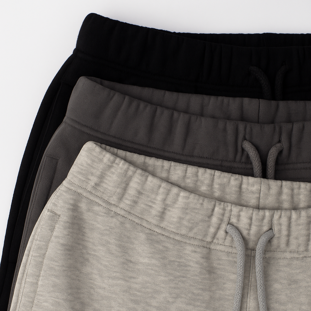 They’re made with heavyweight fleece. Thick, warm, and durable — perfect for cold weather or lounging in comfort.